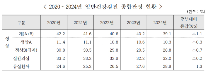 지난해 국가 암검진 수검률 처음 60% 넘어서 지난해 국가 암 검진 수검률이 처음으로 60%를 넘어섰다. 국민건강보험공단은 건강보험 가입자와 피부양자를 대상으로 실시하는 건강검진 현황을 수록한 '2024년 건강검진 통계연보'를 발간했다고 31일 밝혔다. 2025.12.31 10:53