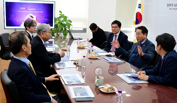 인천 송도세브란스 건립 가속…유정복, 연세대 총장과 '합심 돌파' 유정복 인천시장이 '송도세브란스병원 건립' 등 미래 신성장 동력인 의료복합단지 사업의 속도를 끌어올리기 위해 팔을 걷어붙였다. 8일 인천시와 인천경제자유구역청에 따르면 유 시장은 이날 연세대학교 국제캠퍼스에서 윤동섭 연세대 총장과 만나 '양자 바이오·메디컬 혁신 클러스터 조성'을 위한 협력 방안을 논의했다. 2026.01.08 15:44
