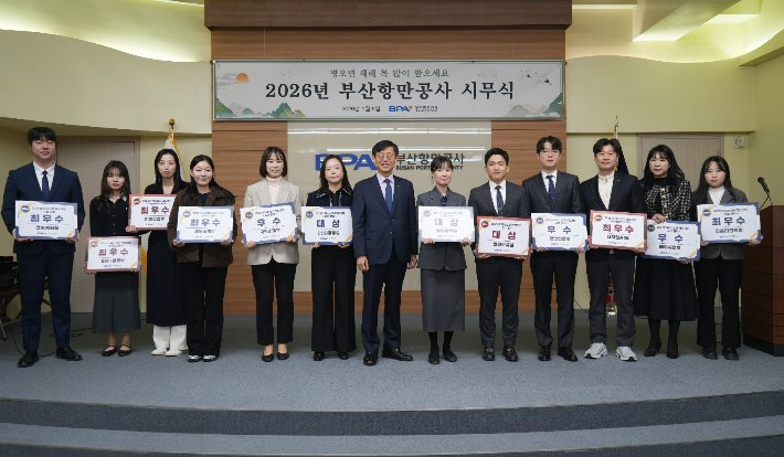 BPA, 2025년 우수·혁신성과 24건 포상 6일 부산항만공사(BPA)는 전날 개최한 시무식에서 공사를 대표하는 '2025년 혁신·우수성과'를 선정해 포상했다고 밝혔다. BPA는 지난달 기관의 혁신적 활동과 경영·사업 전반의 우수성과를 발굴하고 확산하기 위해 '2025년 혁신 및 우수성과 경진대회'를 개최하고 내외부 전문가 심의를 거쳐 24건을 선정했다. 2026.01.06 16:07