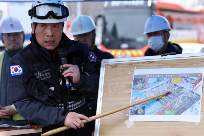 광주 도서관 붕괴 현장, 마지막 실종자 위치 드디어 좁혀졌다 4명이 매몰돼 3명이 수습된 광주 도서관 신축 공사장 붕괴 사고 현장에서 마지막 실종자의 추정 위치가 확인됐다. 13일 소방당국에 따르면 구조대는 중장비를 투입해 콘크리트와 철근 등 잔해를 제거하며, 마지막 실종자 김모(58)씨가 있을 것으로 예상되는 두 개의 PC빔 중앙부를 집중 수색할 계획이다. PC빔은 건물 하중을 지탱하는 핵심 구조물이다. 2025.12.13 10:39