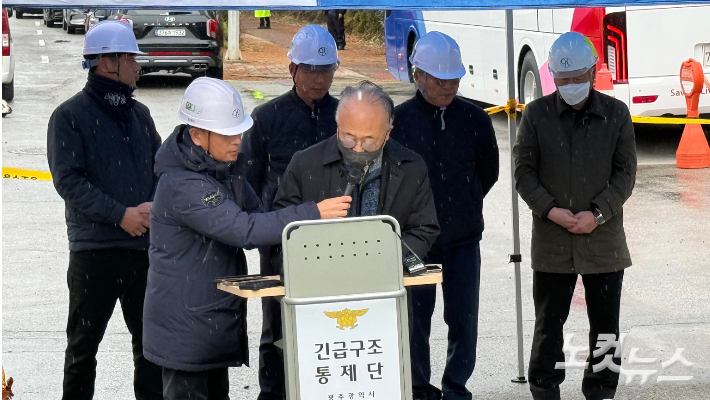 사흘 만에 고개 숙인 붕괴 신축 도서관 시공사 대표 "유가족께 깊이 사과" 광주 도서관 신축 공사장 붕괴 사고로 노동자 4명이 매몰돼 숨진 가운데, 신축 도서관 시공사인 구일종합건설의 김찬식 대표가 사고 발생 사흘 만에 공식적으로 모습을 드러내고 사과했다. 2025.12.13 14:26