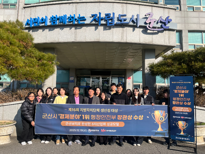 군산시 '지방자치단체 생산성 대상 경제분야' 전국 1위 군산시가 제15회 지방자치단체 생산성 대상 경제분야 우수사례에서 전국 1위를 차지했다. 지방자치단체 생산성 대상은 행정안전부와 한국생산성본부가 공동주관하는 전국 단위 평가다. 2025.12.19 13:45