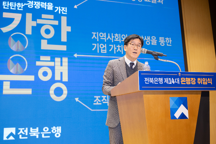 전북은행 신임 박춘원 은행장 "새로운 도약과 성장을 위해 노력하겠다" 전북은행 박춘원 신임 행장은 2일 취임식을 갖고 "회사의 인적자본, 문화자본, 시스템 자본을 기반으로 집단지성을 통해 전략을 도출하고 빠른 실행으로 성과를 이뤄내겠다 "고 밝혔다. 2026.01.02 15:43