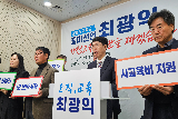 최광익 강원미래교육포럼 대표 '강원교육감' 출마 선언 최광익 강원미래교육포럼 대표는 5일 강원특별자치도교육청 브리핑룸에서 출마 기자회견을 열고 "지난 강원교육은 정치적 이념 논쟁에 휩싸여 갈 길을 잃고 표류했다"며 "강원교육의 새 판을 짜겠다"고 밝혔다. 2026.01.05 12:47