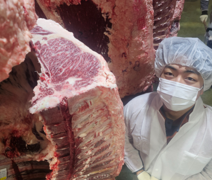 '145㎠'…제주산 한우 등심 단면적 역대 최고치 경신 제주산 한우 등심 단면적이 역대 최고기록을 경신했다. 제주축산농협은 제주시 조천읍 장암영농조합법인이 제주공판장에 출하한 61개월령 한우 암소 등심 단면적이 145㎠를 기록하며 제주도 역대 최고 기록인 140㎠를 경신했다고 15일 밝혔다. 2026.01.15 13:32