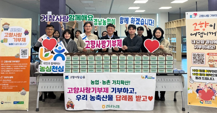 경남농협·경남도, 고향사랑기부제 현장 홍보 전개 경남농협이 연말정산을 앞두고 고향사랑기부제와 농축산물 답례품 소비 확대를 위한 대국민 현장 홍보 활동을 경상남도와 7개시군(거제·거창·고성·밀양·사천·산청·합천)과 합동으로 실시했다. 2025.12.20 17:48