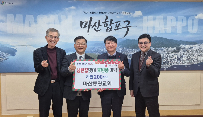 마산동광교회 따뜻한 나눔 실천…마산합포구에 라면 기탁 연말을 맞아 마산동광교회(담임목사 강영구)가 마산합포구에 이웃돕기 물품을 기탁했다. 동광교회는 라면 200박스(600만원 상당)를 마산합포구에 기탁해 어려운 이웃들의 따뜻한 겨울나기에 힘을 보탰다. 동광교회는 매년 장학금 전달과 다양한 나눔 활동을 통해 지역사회에 꾸준한 나눔을 실천하고 있다. 2025.12.27 17:54
