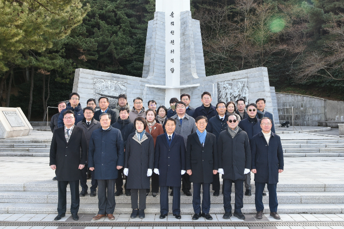 선원노련, 부산 영도 순직선원위령탑 참배 전국해상선원노동조합연맹(선원노련)은 2026년 새해를 맞아 5일 오전 11시 부산 영도구 순직선원위령탑을 참배했다고 이날 밝혔다. 이날 참배에는 선원노련 집행부와 가맹조합 임직원, 부산지방해양수산청 김혜정 청장, 부산항만공사 송상근 사장, 한국해양수산연수원 김민종 원장 등 해운·수산 관련 단체 인사들이 함께 참여했다. 2026.01.05 16:25