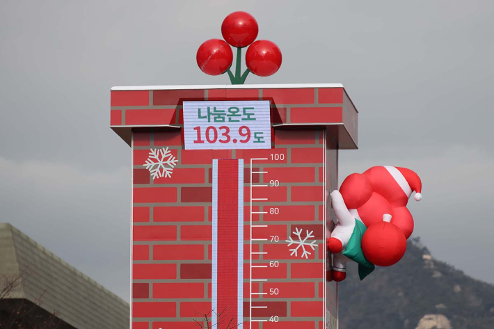 사랑의 온도탑 나눔 온도 100도 돌파[노컷네컷] 12일 서울 종로구 광화문 광장에 설치된 사랑의 온도탑에 나눔 온도가 103.9도를 나타내고 있다. 2026.01.12 12:14