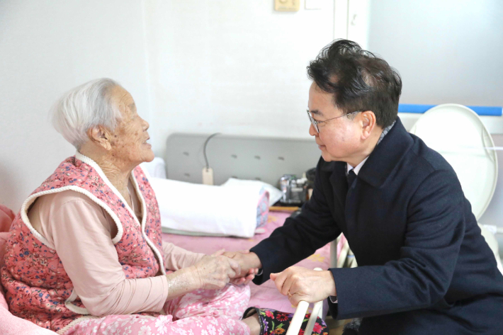 육동한 춘천시장 새해 첫 현장 행보…독거어르신 안부 살펴 강원 춘천시가 새해를 맞아 겨울 한파에 취약한 독거어르신들의 안전과 건강 상태를 직접 살폈다. 육동한 춘천시장은 2일 후평1동에 거주하는 106세 독거어르신 가구를 포함해 2가구를 방문해 건강 상태와 주거 여건을 점검하고, 일상에서 겪는 불편과 애로사항을 청취했다. 2026.01.02 16:48