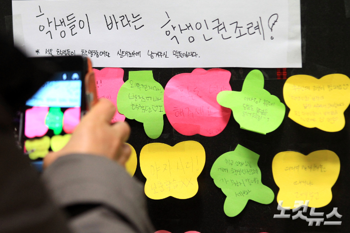 [칼럼]서울시 학생인권조례 폐지, 학생이 우선이다 정근식 서울시교육감이 5일 '서울시 학생인권조례 폐지조례안'에 대해 "헌법과 법률을 위반하고 공익을 현저히 침해한다"며 서울시의회에 재의를 요구했다. 서울시교육청은 학생인권조례 폐지 조례안이 교육청의 학생 기본권 보호 체계를 없애 국가와 지방자치단체의 기본권 보장 의무에 반하는 '헌법 위반'이라는 입장이다. 2026.01.06 09:39