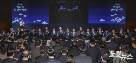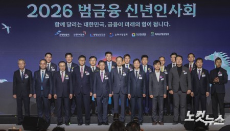 금융권 수장들 한 자리에…"생산적 금융·소비자 보호 강화" 5일 오후 서울 중구 롯데호텔에서 열린 '2026 범금융 신년인사회'에서 참석자들이 기념촬영을 하고 있다. 2026.01.05 15:30
