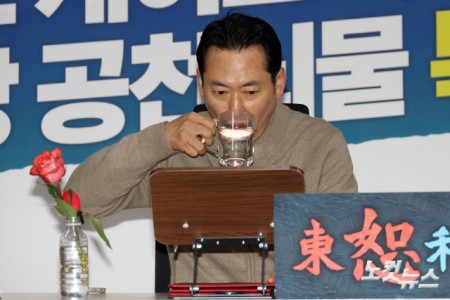 물 마시는 장동혁 대표 '통일교 게이트 특검·민주당 공천뇌물 특검' 수용을 촉구하며 6일째 단식을 이어가고 있는 국민의힘 장동혁 대표가 20일 서울 여의도 국회 로텐더홀 농성장에서 물을 마시고 있다. 2026.01.20 10:51
