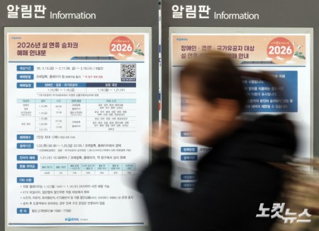 2026년 설 연휴 승차권 예매 시작 설연휴 승차권 일반승객 예매 시작이 시작된 19일 서울역에 예매 안내문이 게시돼 있다. 대상 기간은 2월 13일부터 18일까지 운행하는 열차로, 창구 판매는 실시하지 않고 전면 비대면 방식으로 운영된다. 19일은 호남선·전라선·장항선, 20일은 경전선·중앙선·강릉선·동해선·중부내륙선, 21일은 경부선 승차권 예매가 각각 이뤄진다. 2026.01.19 14:53