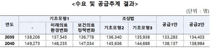 2040년 의사 1만1천명 부족…'의대 정원'은 보정심으로 2040년에 부족한 의사 수가 최대 약 1만1천명 수준일 것이라는 추계 결과가 나왔다. 보건의료정책심의위원회(보정심)는 이 결과를 바탕으로 2027학년도 이후 의대 정원 규모를 논의할 예정이다. 보건복지부는 30일 제12차 의사인력 수급추계위원회를 열고 2025년부터 2040년까지의 의사인력 수급추계 결과를 심의·확정했다고 밝혔다. 2025.12.30 22:00