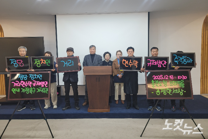 공정한세상 "정치 현수막 규제 법안 연내 개정하라" 충북지역 시민사회단체인 '공정한세상'이 정당·정치인의 거리 현수막 규제 법안의 연내 개정을 촉구하고 나섰다. 이들은 18일 충북도청 브리핑룸에서 기자회견을 열고 "옥회광고물법 개정안이 국회 행정안전위원회를 통과했음에도 현재 법제사법위원에 계류돼 있는 상황에 깊은 유감과 우려를 표한다"고 밝혔다.