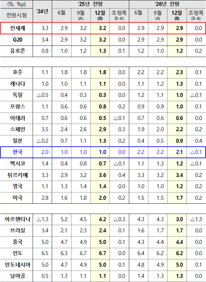 OECD "韓 경제, 올해 1.0%, 내년·내후년 2.1% 성장" 전망 경제협력기구(OECD)가 한국 경제가 올해 1.0%, 내년과 내후년 2.1% 성장할 것으로 내다봤다. 2일 기획재정부 등에 따르면 이날 OECD가 발표한 '경제전망'(Economic outlook)에서 한국의 올해 국내총생산(GDP) 성장률을 올해 1.0%, 내년과 내후년 2.1%로 각각 예상했다.
